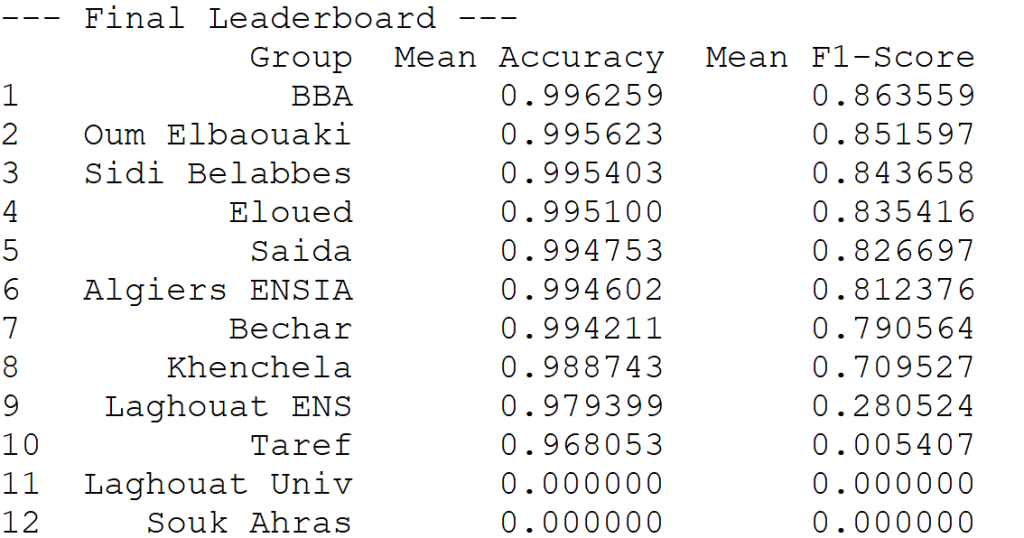 الترتيب النهائي للمشاركين حسب الاستحقاق